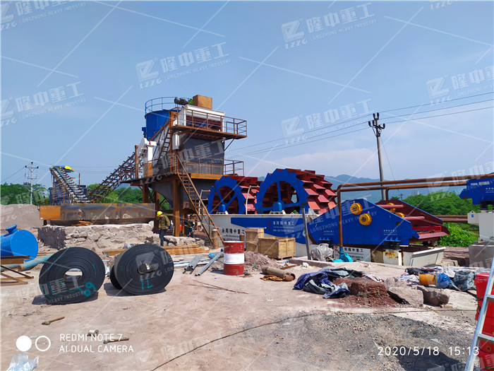 鵝卵石濕法制砂洗砂的生產線現場_附加工設備報價..